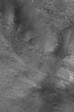 The central peak of Oudemans Crater, located at the edge of the Labyrinthus Noctis trough system, consists of steeply-dipping rock layers that were uplifted and tilted by the meteor impact that formed the crater. This Mars Global Surveyor (MGS) Mars Orbiter Camera (MOC) image shows an example. The banded features are layers of light-toned, possibly sedimentary, rock that were brought to the surface and uplifted by the impact process that formed the crater and its central peak. Oudemans Crater's central peak serves as a means for probing the nature of rock that lies beneath the plains cut by the Labyrinthus Noctis troughs, which are part of the vast Valles Marineris system. This March 2004 picture is located near 10.2°S, 92.0°W. The image covers an area about 3 km (1.9 mi) across and is illuminated by sunlight from the upper left.