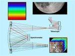 The Moon Mineralogy Mapper is a state-of-the-art NASA imaging spectrometer. Sunlight reflected off the moon enters the telescope and then is passed by mirrors to the spectrometer. In the spectrometer, white light is dispersed into different wavelengths (from 0.43 to 3 micrometers) for every point in an image. Once in orbit around the moon, the instrument generates three dimensional cubes of data that allow scientists to map the composition of the surface.