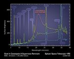 The elements and molecules that flew out of the Cassiopeia A star when it exploded about 300 years ago can be seen clearly for the first time in this plot of data, called a spectrum, taken by NASA's Spitzer Space Telescope.