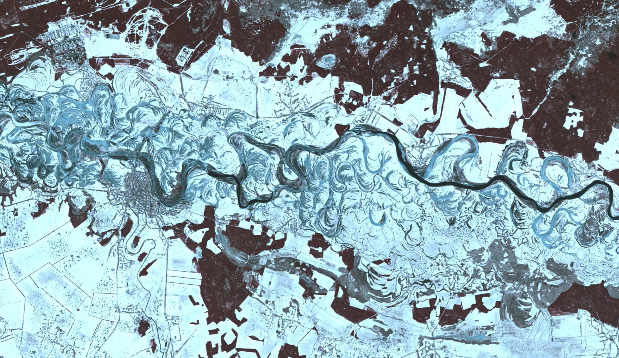 NASA's Terra spacecraft shows the many meanders and abandoned paleochannels of the Dneiper River in the Ukraine.