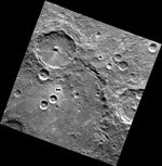 The large, central peaked crater featured in this image is Tsurayuki crater, named for the Japanese author and poet Ki no Tsurayuki. Tsurayuki sits on the rim of the older, larger Pushkin crater, named for the Russian poet Alexander Sergeyevich Pushkin. In addition to his poetry, Pushkin was well known for his dueling, fighting twenty-nine duals over his lifetime. Ultimately, he met his end in such a duel, defending the honor of his wife in a duel with a French officer who attempted to seduce her. This image is a good example of the law of superposition and cratering mechanics with craters ranging in size and age from small, bowl-shaped craters through large, complex craters and basins.