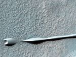 Sand dunes such as those seen in this image have been observed to creep slowly across the surface of Mars through the action of the wind. These are a particular type of dune called a "barchan," which forms when the wind blows in one direction (here, east to west) for long periods of time. Barchan dunes are common on Mars and in the desert regions of the Earth.