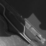 Since landing on Mars a year ago, NASA's pair of six-wheeled geologists have been constantly exposed to martian winds and dust. As a result, the Spirit rover has gradually experienced a slight decline in power as a thin layer of dust has accumulated on the solar panels, blocking some of the sunlight that is converted to electricity. In this enlarged image of a postage-stamp-size (3-centimeter-square, 1.2-inch-square) portion of one of Spirit's solar panels, a fine layer of martian dust coats electrical connections and metal surfaces. Individual silt grains or clumps of dust are visible where sediment has accumulated in crevices between solar cells and circuits. The upper right half of the image shows the edge of one of the rover's solar cells. The lower left half shows electrical wires bonded with silicon adhesive to the underlying composite surface; the circular abrasions are the result of sanding by hand on Earth. The braided wire is connected to a thermocouple used to measure temperature based on electrical resistance. Spirit took this image with its microscopic imager on martian day, or sol, 350 (Dec. 26, 2004).