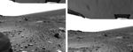 By comparing the separate images from the rover's different cameras, team members estimate that the dust devils moved about 500 meters (1,640 feet) in the 155 seconds between the navigation camera and hazard-avoidance camera frames; that equates to about 3 meters per second (7 miles per hour). The dust devils appear to be about 1,100 meters (almost three-quarters of a mile) from the rover.