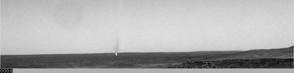 Also near the end of the movie the dust devil seems to move faster across the surface. This is because Spirit began taking pictures less frequently, and not because the dust devil sped up.
