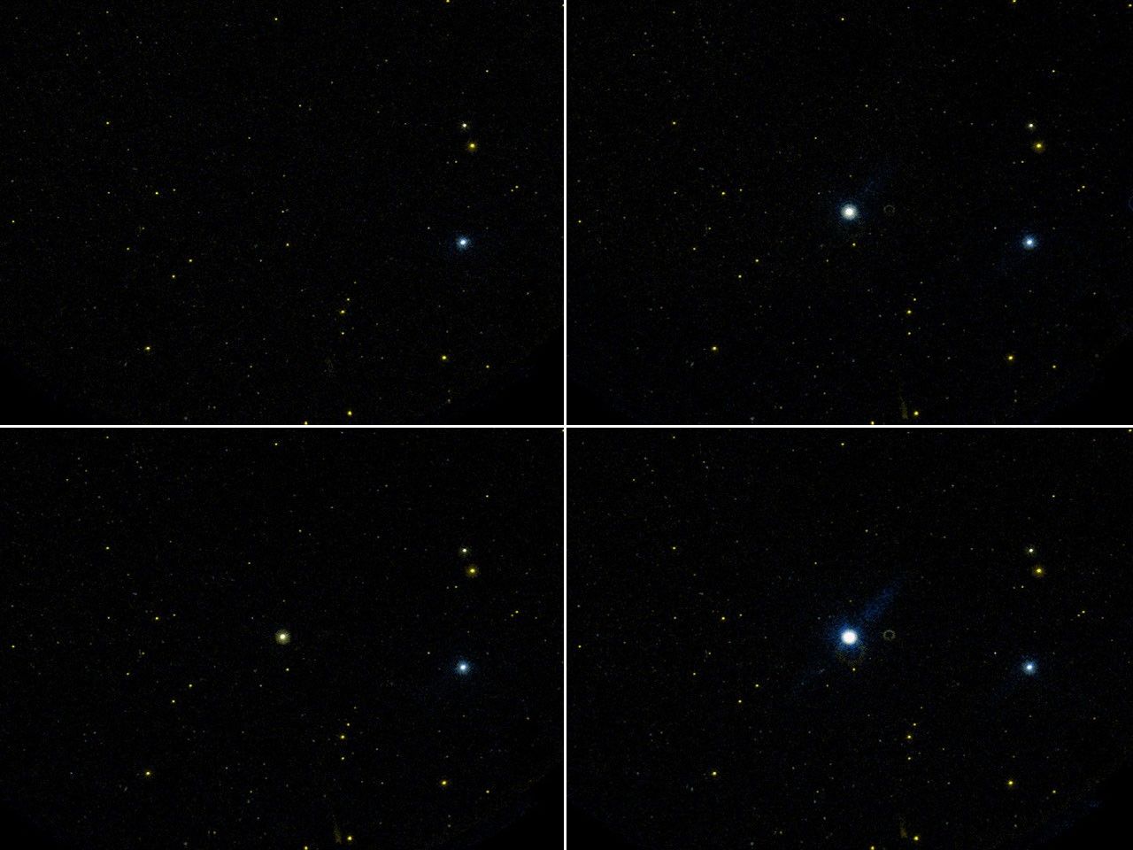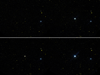 This movie taken by NASA'S Galaxy Evolution Explorer shows one of the largest flares, or star eruptions, ever recorded at ultraviolet wavelengths. The star, called GJ 3685A, just happened to be in the Galaxy Evolution Explorer's field of view while the telescope was busy observing galaxies. As the movie demonstrates, the seemingly serene star suddenly exploded once, then even more intensely a second time, pouring out in total about one million times more energy than a typical flare from our Sun. The second blast of light constituted an increase in brightness by a factor of at least 10,000.