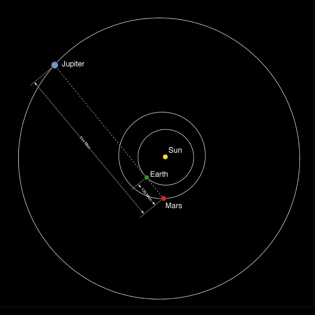Earth and Jupiter as viewed from Mars