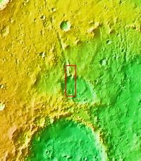 The channel entering Eberswalde Crater has deposited a fan-shaped delta on the crater floor.
