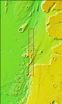 The mesas and valleys in the center of this VIS image are part of Echus Chaos. Located on the margin of Lunae Planum and south of Kasei Valles, Echus Chaos is 480 km (298 miles) long.