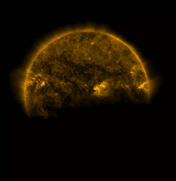 Several times a day for a few days this week the Earth completely blocked the Sun for about an hour due to SDO's orbital path (Aug. 25, 2016). The edge of the Earth is not crisp, but rather kind of fuzzy due to Earth's atmosphere. The entire video clip here shows the beginning of one such eclipse, covering just seven minutes. These occur about every six months. The Moon blocks SDO's view of the Sun on occasion as well.