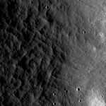 The texture of ejecta thrown from Van de Graaff Crater along the northern rim, seen from a low Sun angle in the NAC image (incidence angle is 72°). This subset of the NAC image M115177455R has a width of 980 meters (3215 feet).