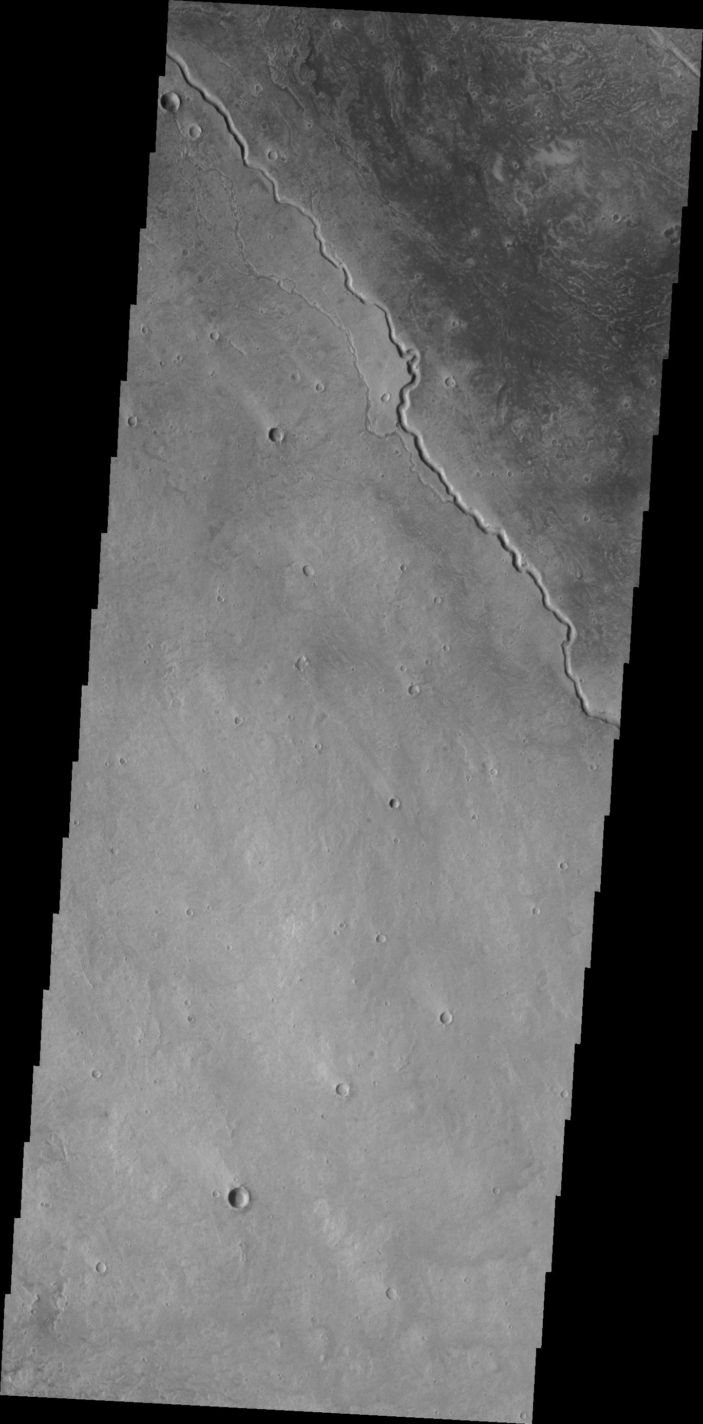 The channels in this VIS image are located on the northwestern margin of the Elysium Volcanic complex. Channels are very common in this region and were likely created by the flow of lava.