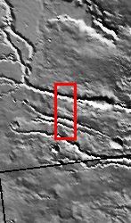 The grabens (fractures) that dominate this scene are located northwest of a large shield volcano called Elysium Mons. Layered rock is evident along the lips of the graben as are ripples on the floors of these features. Some shallow grabens are also seen in this region.