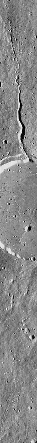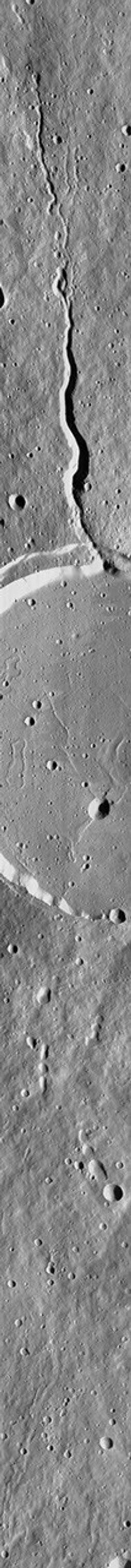 This image: MOC image 40303, shown at 25% of its original size. North is approximately up, illumination is from the right. Resolution of picture shown here is 21 meters (69 feet) per pixel. Image was received with bright slopes saturated at DN=255.