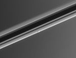 From a viewing angle slightly above the ringplane, NASA's Cassini spacecraft spied Saturn's moon Atlas, which orbits Saturn between the broad A ring and the thin F ring.