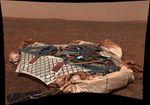 This image mosaic taken by the panoramic camera onboard the Mars Exploration Rover Spirit shows the rover's landing site, the Columbia Memorial Station, at Gusev Crater, Mars. This spectacular view may encapsulate Spirit's entire journey, from lander to its possible final destination toward the east hills. On its way, the rover will travel 250 meters (820 feet) northeast to a large crater approximately 200 meters (660 feet) across, the ridge of which can be seen to the left of this image. To the right are the east hills, about 3 kilometers (2 miles) away from the lander. The picture was taken on the 16th martian day, or sol, of the mission (Jan. 18/19, 2004). A portion of Spirit's solar panels appear in the foreground. Data from the panoramic camera's green, blue and infrared filters were combined to create this approximate true color image.