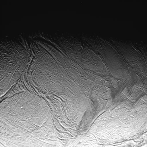 The image was taken with the Cassini spacecraft narrow-angle camera on Oct. 9, 2008, a distance of approximately 45,000 kilometers (28,000 miles) from Enceladus. Image scale is 541 meters (1,774 feet) per pixel.