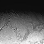 This image was taken during Cassini's extremely close encounter with Enceladus on Oct. 9, 2008.