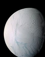 The enhanced color view of Enceladus seen here is largely of the southern hemisphere and includes the south polar terrain at the bottom of the image.