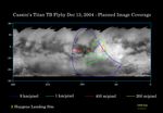 This map of Titan's surface illustrates the regions that will be imaged by the Cassini spacecraft during the spacecraft's second close flyby of Titan on Dec. 13, 2004.
