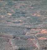 NASA's Mars Exploration Rover Opportunity used its panoramic camera to capture this false-color image of the interior of "Endurance Crater" on the rover's 188th martian day (Aug. 4, 2004). The image data were relayed to Earth by the European Space Agency's Mars Express orbiter. The image was generated from separate frames using the cameras 750-, 530- and 480-nanometer filters.
