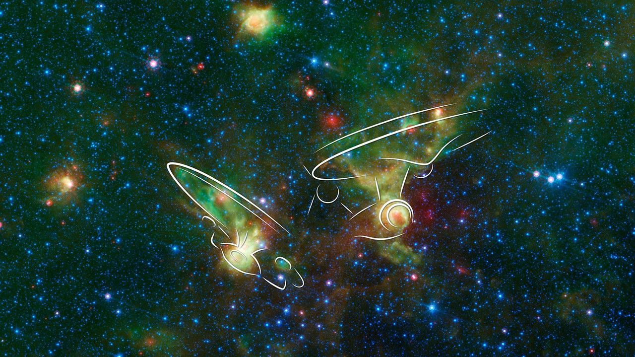 Just in time for the 50th anniversary of the TV series "Star Trek," which first aired September 8th,1966, this infrared image from NASA's Spitzer Space Telescope may remind fans of the historic show. Just as one might see the shapes of animals or other objects in clouds -- a phenomenon called pareidolia -- iconic starships from the series may seem to emerge in these nebulae./