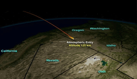This animation illustrates the path the Stardust return capsule will follow once it enters Earth's atmosphere.
