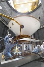 The Phoenix lander was encapsulated in its aeroshell -- which included both the back shell and heat shield -- as it was subjected to extreme cold and heat in a vacuum, space-like condition. The spacecraft undergoes extensive environmental testing to confirm Phoenix will perform in the extreme conditions it will experience during its trip from Earth to Mars, during its arrival and landing, and while it works on the surface of Mars.