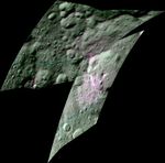 This enhanced color composite image from Dawn's visible and infrared mapping spectrometer shows the area around Ernutet Crater on Ceres. The instrument detected the evidence of organic materials in this area, as reported in a 2017 study in the journal Science. In this view, areas that appear pink with respect to the background appear to be rich in organics, and green areas are where organic material appears to be less abundant.