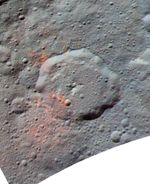 This enhanced color composite image, made with data from the framing camera aboard NASA's Dawn spacecraft, shows the area around Ernutet crater. The bright red portions appear redder with respect to the rest of Ceres. In a 2017 study in the journal Science, researchers from the Dawn science team found that these red areas around Ernutet are associated with evidence of organic material.