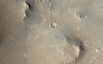 This image from NASA's Mars Reconnaissance Orbiter shows one of millions of small (10s of meters in diameter) craters and their ejecta material that dot the Elysium Planitia region of Mars. The small craters were likely formed when high-speed blocks of rock were thrown out by a much larger impact (about 10-kilometers in diameter) and fell back to the ground.