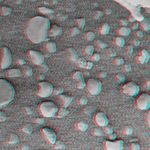 This 3-D image from the Mars Exploration Rover Opportunity rover shows an extreme close-up of round, blueberry-shaped grains on the crater floor near the rock outcrop at Meridiani Planum called Stone Mountain. Scientists are studying these curious formations for clues about the soil's history. The observed area is 3 centimeters (1.2 inches) across.