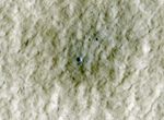 At the center of this view of an area of mid-latitude northern Mars, a fresh crater about 6 meters (20 feet) in diameter holds an exposure of bright material, blue in this false-color image. The High-Resolution Imaging Science Experiment (HiRISE) camera on NASA's Mars Reconnaissance Orbiter made this observation on June 20, 2010.
