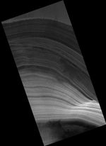 Image PSP_001398_2615 was taken by the High Resolution Imaging Science Experiment (HiRISE) camera onboard the Mars Reconnaissance Orbiter spacecraft on November 13, 2006. The complete image is centered at 81.5 degrees latitude, 47.3 degrees East longitude. The range to the target site was 315.5 km (197.2 miles). At this distance the image scale is 31.6 cm/pixel (with 1 x 1 binning) so objects ~95 cm across are resolved. The image shown here has been map-projected to 25 cm/pixel. The image was taken at a local Mars time of 2:17 PM and the scene is illuminated from the west with a solar incidence angle of 65 degrees, thus the sun was about 25 degrees above the horizon. At a solar longitude of 134.7 degrees, the season on Mars is Northern Summer.
