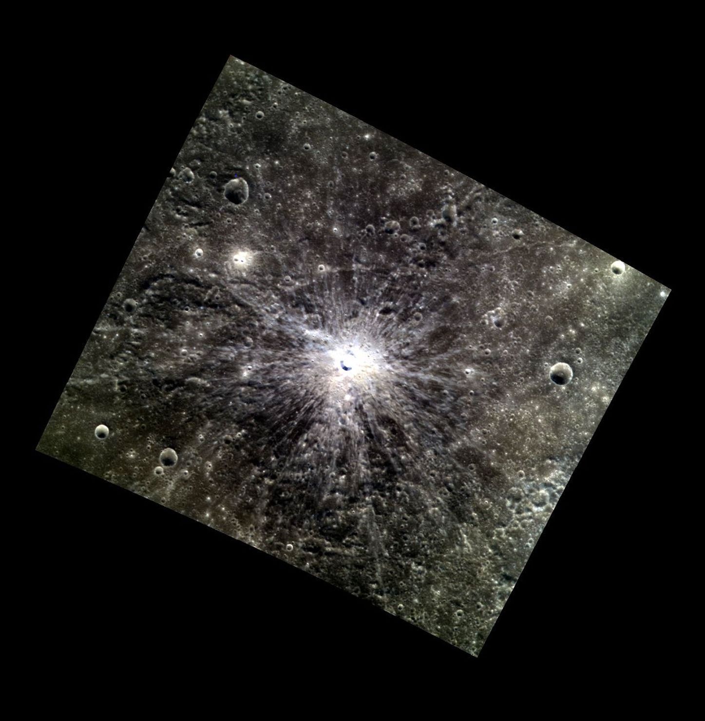 Today's image features an unnamed crater located north of the crater Couperin. Although this crater is only about 6 km (3.7 mi.) in diameter, its bright rays cause it to stand out prominently in regional views of the planet. The rays are particularly distinctive because they fade into the blacker background of low reflectance material.