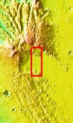The ridge in the upper portion of this image is located in Acheron Fossae, a large, arcuate set of faulted ridges north of Lycus Sulci and Olympus Mons.