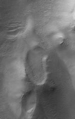 This Mars Global Surveyor (MGS) Orbiter Camera (MOC) image shows landforms, including large, windblown ripples, on the floor of the ancient, giant Argyre impact basin.