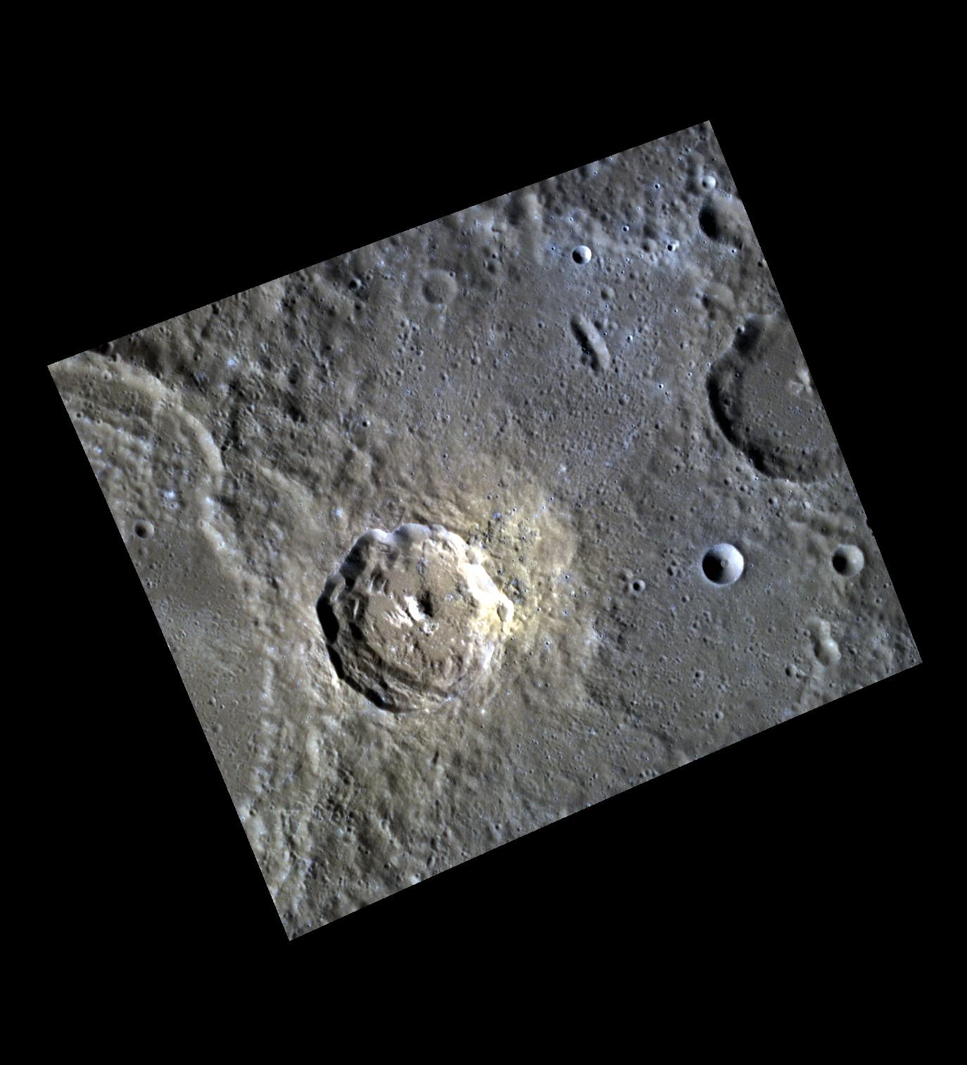This image was acquired as a high-resolution targeted color observation. Targeted color observations are images of a small area on Mercury's surface at resolutions higher than the 1-kilometer/pixel 8-color base map. During MESSENGER's one-year primary mission, hundreds of targeted color observations were obtained. During MESSENGER's extended mission, high-resolution targeted color observations are more rare, as the 3-color base map covered Mercury's northern hemisphere with the highest-resolution color images that are possible.