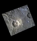 Scale: The bright unnamed crater is about 33 km in diameter (21mi.)