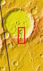 At one time the floor of this unnamed crater west of Hellas Basin was completely filled with material from rim to rim. As this image shows, part of that fill material is being removed. The hole that is formed shows that the fill material was layered. A very rough surface is located at the bottom of the hole.