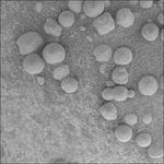 The "triple berry" seen in the center of the microscopic image is intriguing to scientists because it reveals a clue about how the blueberries formed. Spheres formed from impacts or volcanoes do not tend to mold together like the spheres seen in the microscopic image. Spheres from impacts or craters are usually round or teardrop-shaped from flying in the air and freezing before hitting the ground. Any droplets of magma that combine with other droplets usually grow into a single mass in a spherical, dumbbell, or teardrop shape. In contrast, concretions could form this triple berry shape. Concretions are spherical mineral structures formed by groundwater percolating through porous rocks. On Earth, as concretions grow in close proximity to each other, their outer edges often intersect each other, giving an appearance like a triple soap bubble.