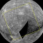 The graphic shown here outlines in yellow the planned footprint for the first image to be acquired from a spacecraft orbiting Mercury. The image will be obtained as MESSENGER is high above Mercury's south pole and will include a portion of Mercury's surface not previously seen by spacecraft.