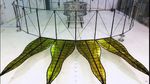 The first prototype starshade developed by NASA's Jet Propulsion Laboratory, shown in technology partner Astro Aerospace/Northrup Grumman's facility in Santa Barbara, California, in 2013. As shown by this 66 foot (20-meter) model, starshades can come in many shapes and sizes. This design shows petals that are more extreme in shape which properly diffracts starlight for smaller telescopes. Each petal is covered in a high-performance plastic film that resembles gold foil. On a starshade ready for launch, the thermal gold foil will only cover the side of the petals facing away from the telescope, with black on the other, so as not to reflect other light sources such as the Earth into its camera.