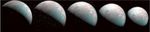 The north pole of Jupiter's giant moon Ganymede can be seen in this composite image of infrared data from the Jovian Infrared Auroral Mapper (JIRAM) instrument aboard NASA's Juno spacecraft. Five infrared images were taken every 20 minutes, beginning at time of closest approach (far left) on Dec. 26, 2019, when Juno was about 62,000 miles (100,000 kilometers) distant. The infrared imagery provides the first infrared mapping of the massive moon's northern frontier.