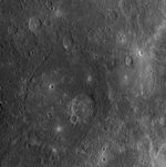 During MESSENGER’s second Mercury flyby, the first images that were taken following closest approach were acquired using the WAC’s 11 narrow-band color filters. Five different scenes were acquired in 11 filters each, resulting in 55 images total that comprise a 5 column x 1 row mosaic. The individual WAC image shown here is the fifth scene of that 5x1 mosaic. The large, smooth-floored crater near the center of the image is Titian, named in honor of Tiziano Vecellio, the Italian Renaissance painter. Scenes one, two, three, and four of this mosaic can be viewed in previously released images. Though the entire 5x1 mosaic only took about six minutes to be obtained, the resolution of the images changed by a factor of two between scene one and scene five shown here, as the MESSENGER spacecraft sped away from Mercury. An enhanced color movie using images from this mosaic has also been released (see PIA11416).