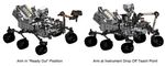 This engineering drawing shows the arm on NASA's Curiosity's rover in its "ready-for-action" position, or "ready out" as engineers say, in addition to the position it assumes to drop off samples.