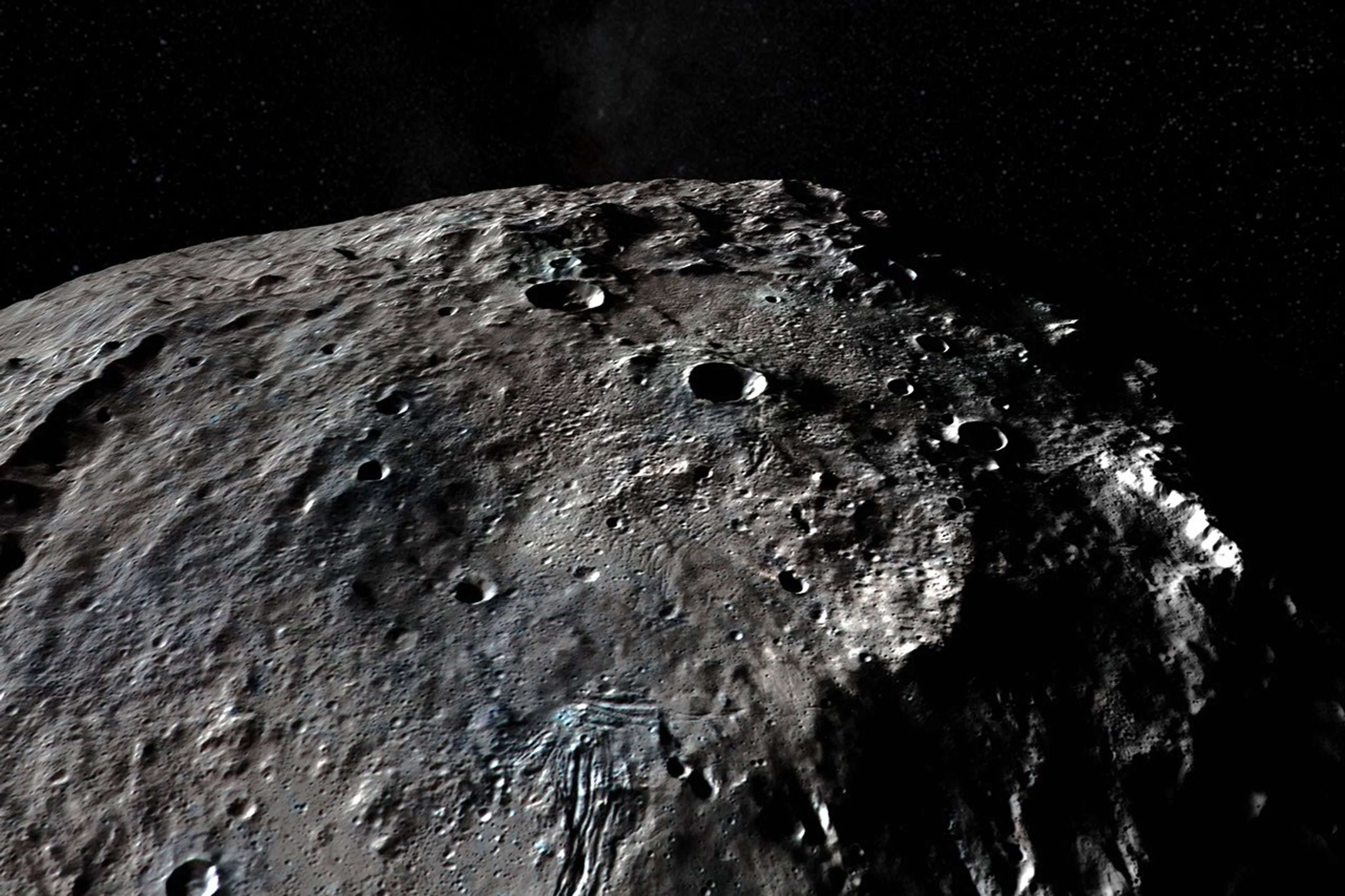This simulated flight over Ceres emphasizes the most prominent craters, as well as the mountain Ahuna Mons. The movie shows Ceres in enhanced color, which helps to make visible subtle differences in the appearance of surface materials.