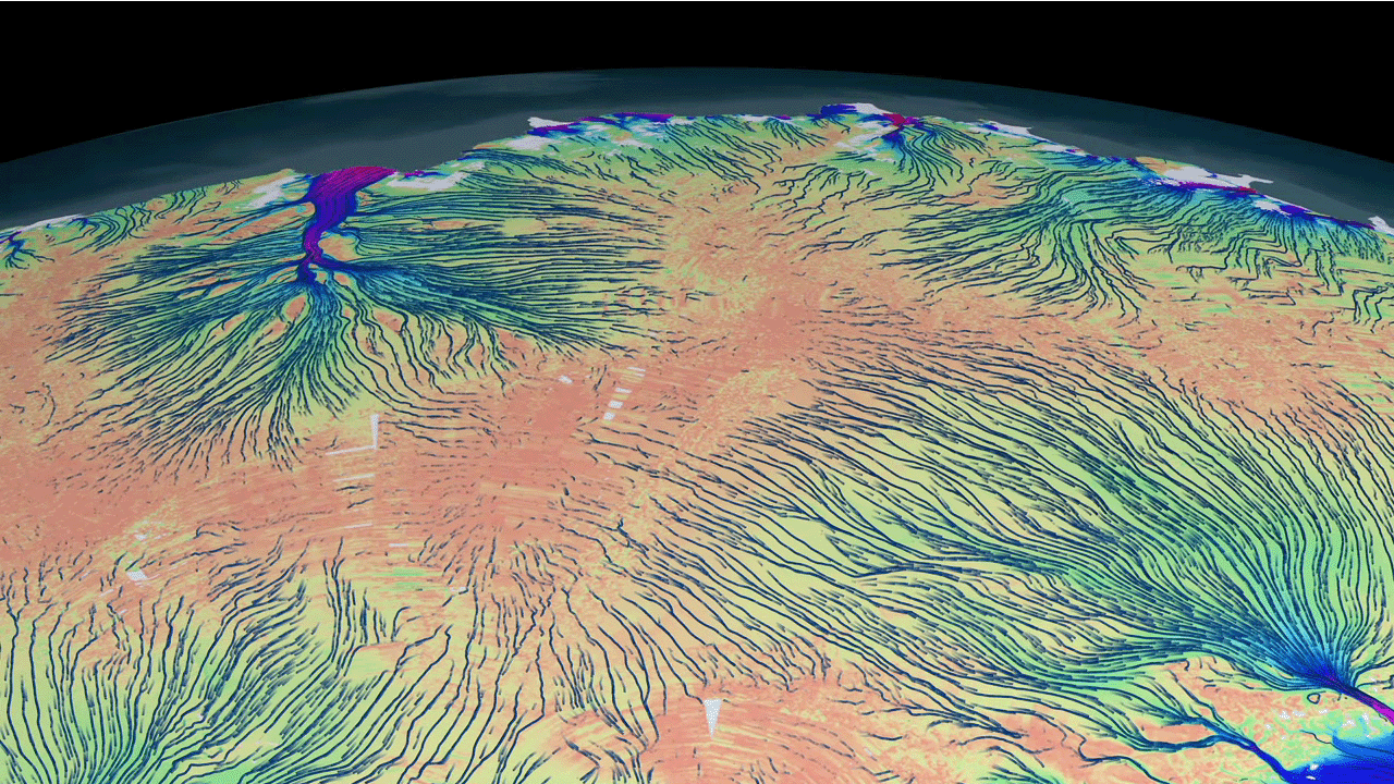 These animations do not show where ice is melting, but how ice is naturally transported from the interior regions, where it accumulates from snowfall, to the coastal regions where it is discharged into the ocean as tabular icebergs and ice-shelf melt water. For the purpose of the animation, hundreds to thousands of years of motion are represented on much shorter timescales.