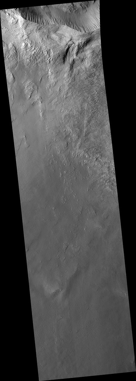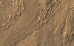This oblique view from NASA's Mars Reconnaissance Orbiter shows a small part of the near-rim ejecta from Tooting Crater. The flow extending from upper left to lower right looks much like a typical lava flow, but doesn't emanate from a volcanic vent.