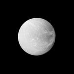 See PIA06163 for an older, closer view of Dione's wispy fractures. This view looks toward the Saturn-facing side of Dione (1,123 kilometers, or 698 miles across). North on Dione is up and rotated 1 degree to the right.